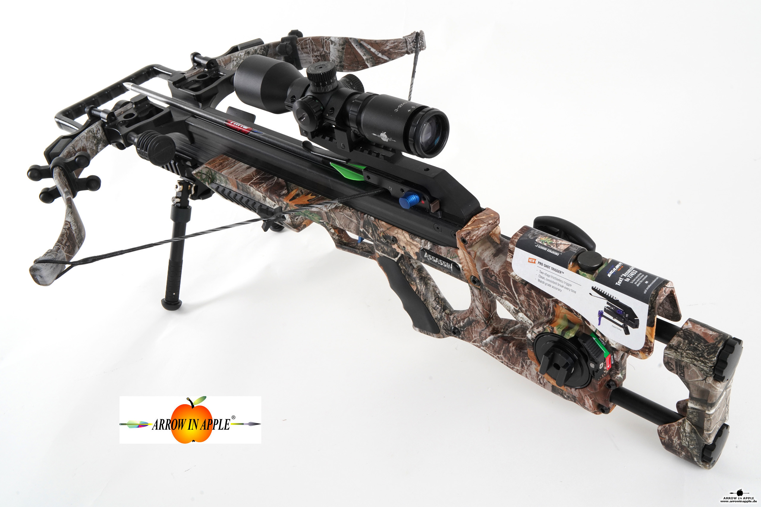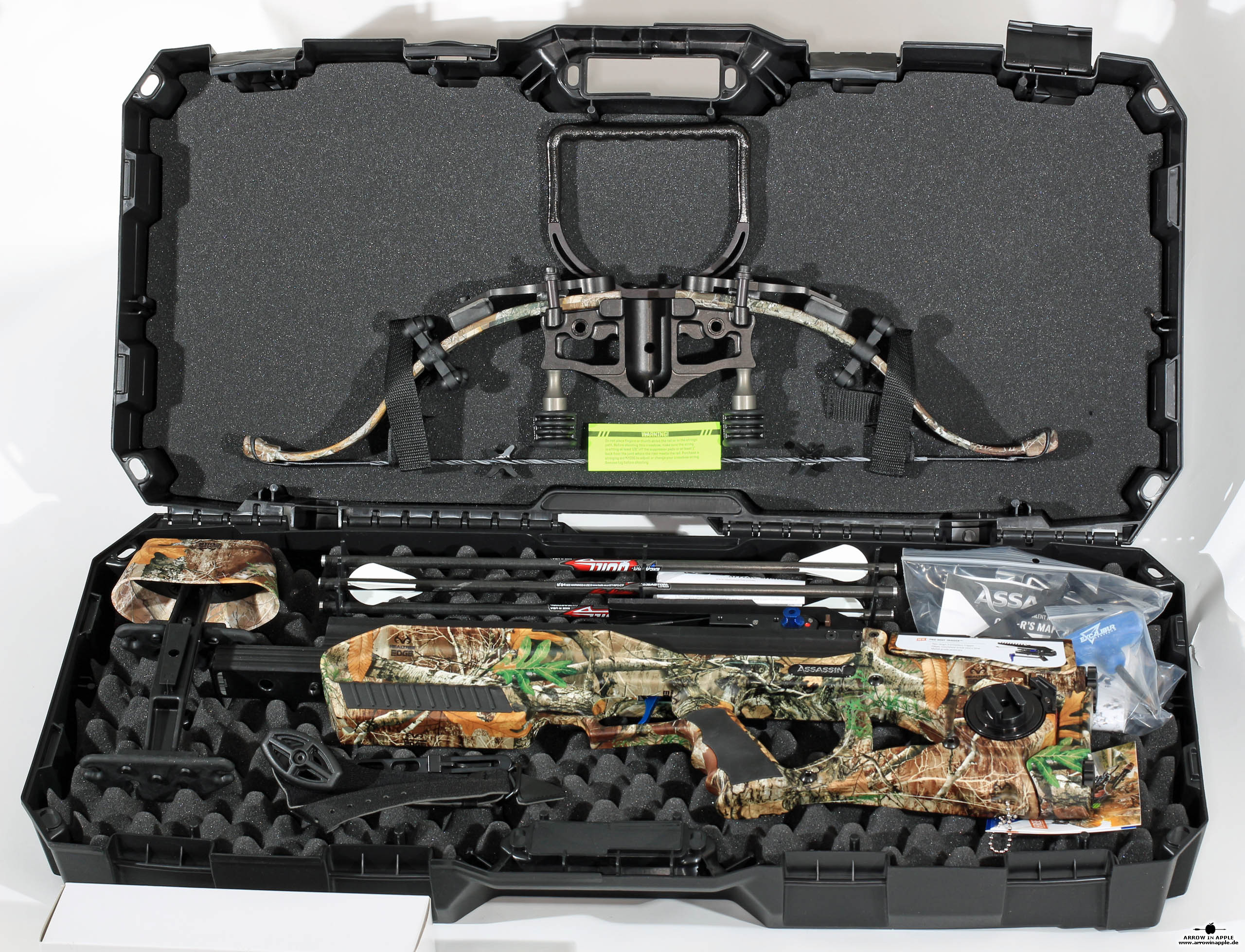 Excalibur Assassin 360, als komplettes Paket inkl. Koffer, Dämpfung und Zielfernrohr bei ARROW IN APPLE. Die Assassin ist das modernste Produkt der Excalibur Schmiede. Hier sind erstmals viele Wünsche der Nutzer (hauptsächlich auch Jäger) in ein Produkt gebracht worden, die den Umgang mit dem Sport -/ Jagdgerät wesentlich erleichtern. Im Gegensatz zur einfachen Excalibur Micro Assassin Strata, kommt die ASSASSIN in der Vollausstattung mit einem besseren Camo, mit Air Brakes und mit Hartschalenkoffer Dazu zählt die absolute kompakte Bauweise, der neue integrierte fast lautlose Kurbelspannmechanismus, der neue 2 Stufenabzug, die verstellbare und gleichzeitig integrierte Schulterstütze und Wangenauflage. Alle bei Excalibur verfügbaren Dämpfungssysteme sind bereits verbaut. Das Spannen mit der Kurbel erlaubt auch einen Bogen mit 285 lbs Auszugsstärke zu bedienen aber man kann zur Not auch noch mit einem normalen Spannseil laden. Dazu gibt es einen Hartschalen - Transportkoffer, Köcher, 4 Pfeile, ein Tactzone Zielfernrohr, Handschlaufe mit Kurbel , entsprechendes Werkzeug. Kaufen Sie bei uns - Wir sind dazu befugt den Service für die Kurbelspannhilfe zu leisten, ohne das Sie die Armbrust nach Kanada senden müssen. |