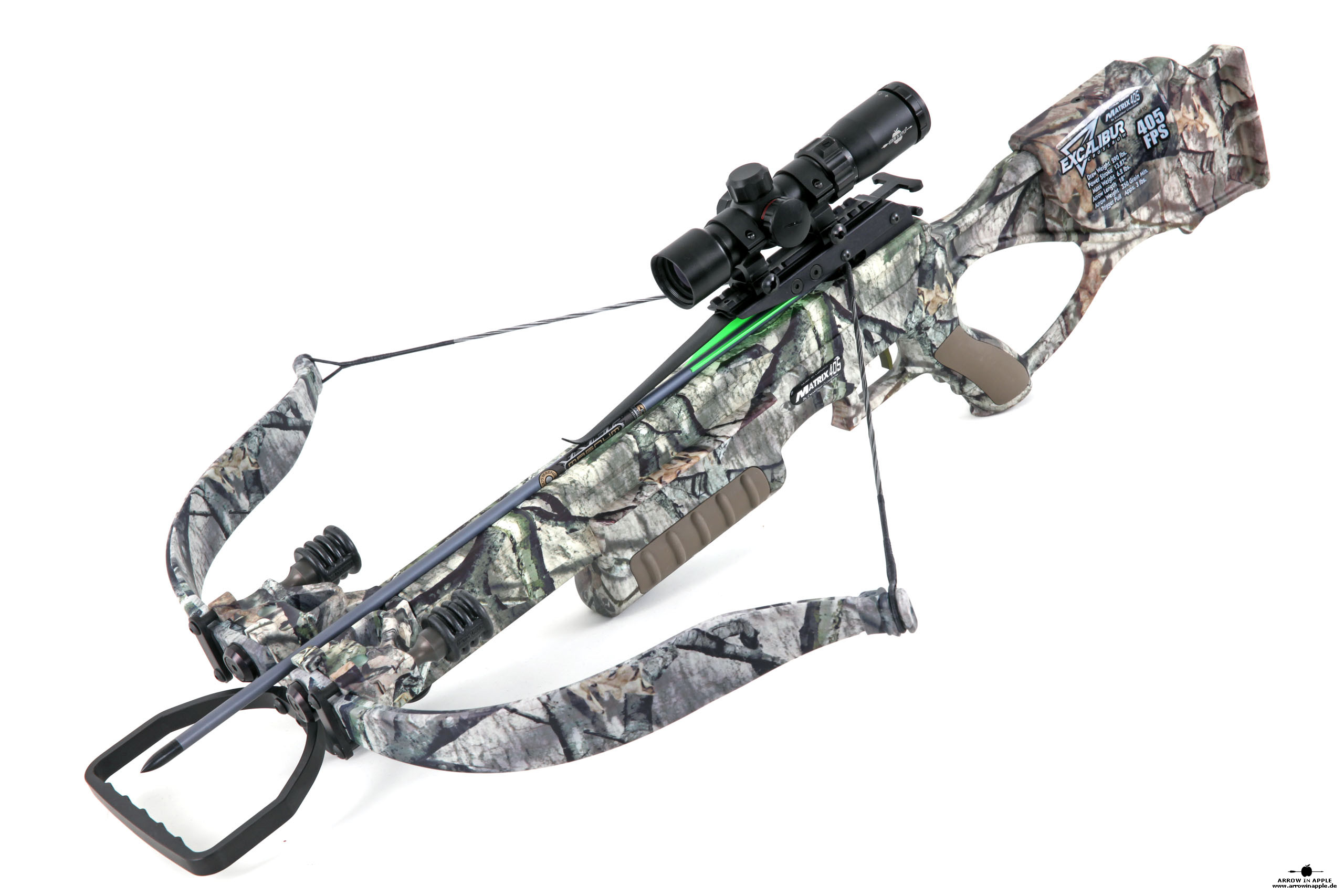 Die stärkste Recurve Armbrust, die Excalibur Matrix Mega 405 hat einen Nachfolger. Die Excalibur Bulldog 400 ist seit 2016 das stärkste Recurvemodell. Wir empfehlen wegen der brachialen Gewalt und der enormen Lautstärke bei Pfeilgewichten von 22,7g (350 grain) bis 26g (ca. 400 grain) größere Pfeilgewichte. Der 20" Full Metal Jacket Pfeil (TenPoint - mit Omninock) wiegt ca. 35g. Die Mega 405 beschleunigt diesen Pfeil immer noch auf 350fps und ist damit auch noch wesentlich ruhiger und genauer als mit den leichten "Stricknadeln". Zusätzliche Dämpfungssysteme wie die Air Brakes und die Brake Pads machen die Matrix noch leiser und ruhiger. Wir empfehlen wie für alle Excalibur Armbrüste immer einen Stringer |