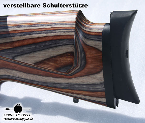 Gerade diese zusätzliche Einstellfunktion und natürlich auch das perfekte Feeling des Schichtholzschaftes ergibt ein vollkommen neues, angenehmes Handling für den anspruchsvollen Schützen und sichert sehr gute Ergebnisse.