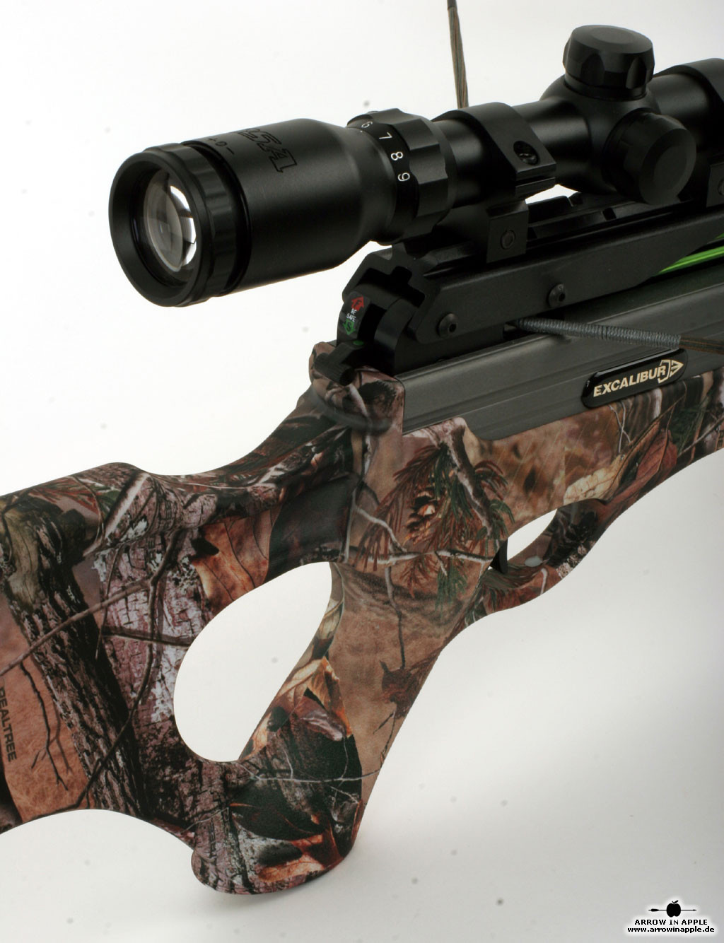 Für die Verwendung eins Zielfernrohres (u.a. passend AIA 4 x 32 ) wird ebenfalls die Excalibur Zielfernrohrmontage Schiene (sope mount) empfohlen.
