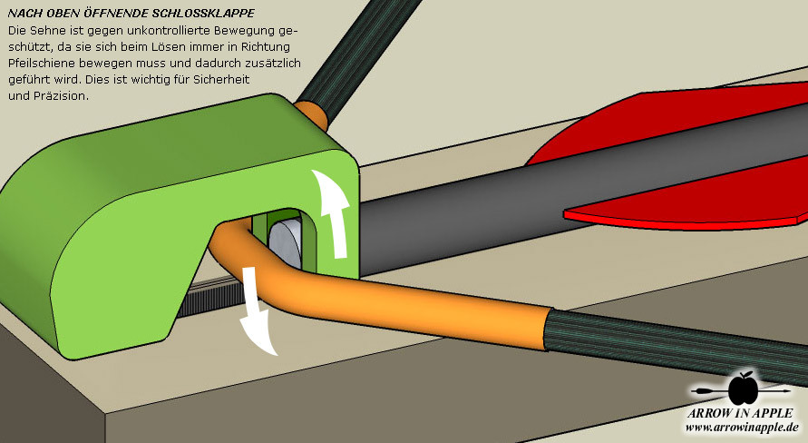 Die Great Lakes Impact besitzt wie alle hochwertigen High- Tech Armbrüste, als "Markenzeichen", ein Schlosssystem mit einer nach oben öffnenden Schloßklappe und ist zusätzlich mit einer aktiven Trockenschusssicherng ausgerüstet.