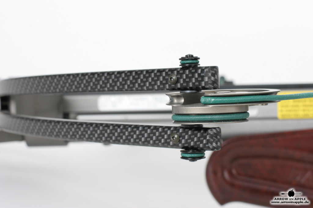 Die Impact ist jetzt mit einem Vibra Cush ausgestattet. Zwischen Bogen und Schiene wurde also ein Kunststoffdämpfungsteil eingebracht. Alle für das Schiessen wichtigen Teile sind aus einer hochwertigen Aluminiumlegierung gefräst, Teflon imprägniert oder die Rollen aus Titanlegierung gefertigt.