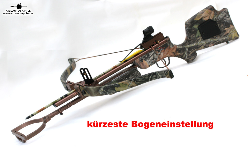 Die 3 fach verstellbare Auszugslängen (180 lbs bei 13,25 Zoll Länge, 125 lbs bei 11,875 Zoll und 90 lbs bei 7,75 Zoll) können schnell und bequem und doch exakt fest eingestellt werden. D.h. für jedes Alter, jede Größe oder für jeden Bedarf ist die Armbrust einstellbar, ja sie erfüllt sogar in der kürzesten Auszugslänge wichtige Kriterien für das Feldarmbrustschiessen.