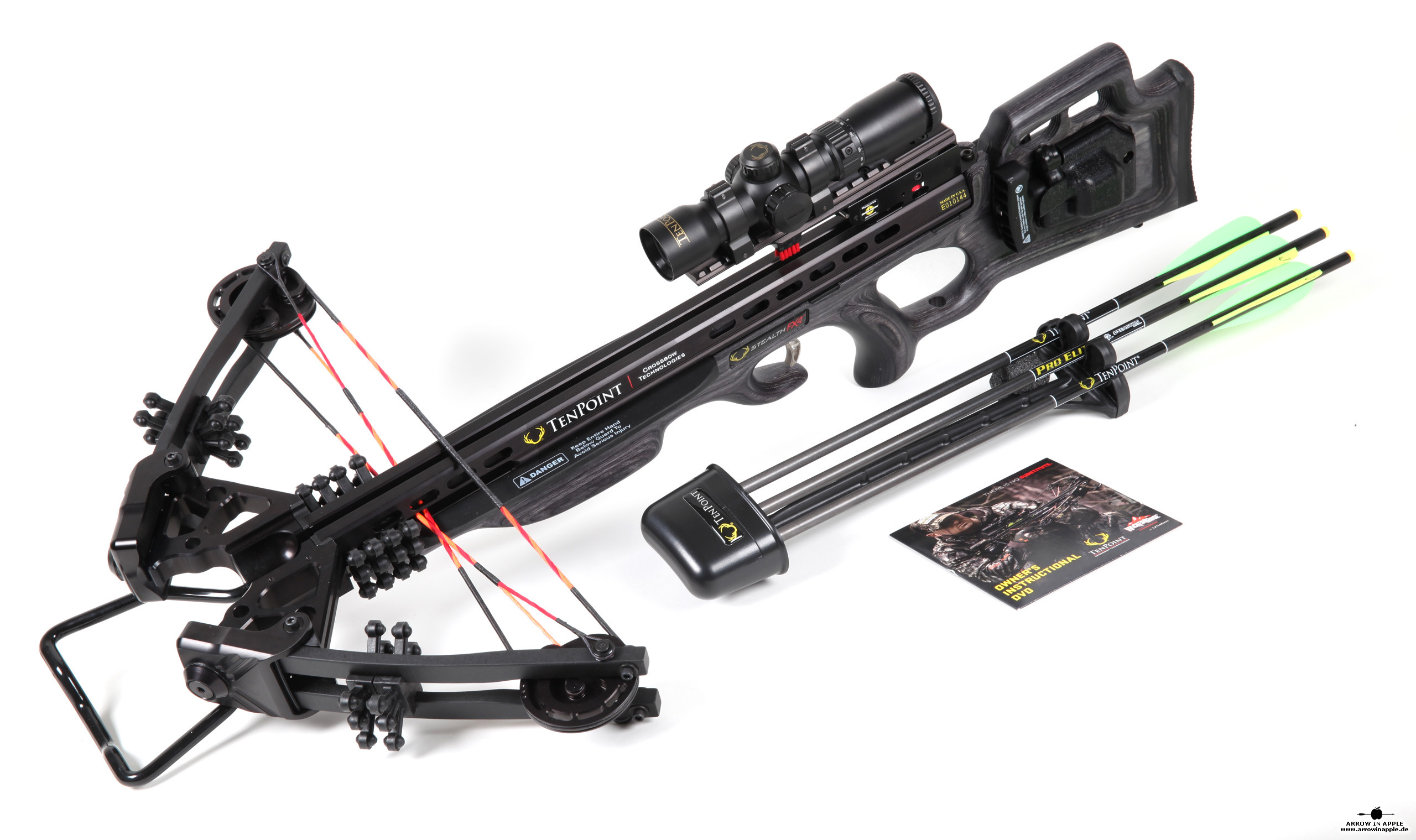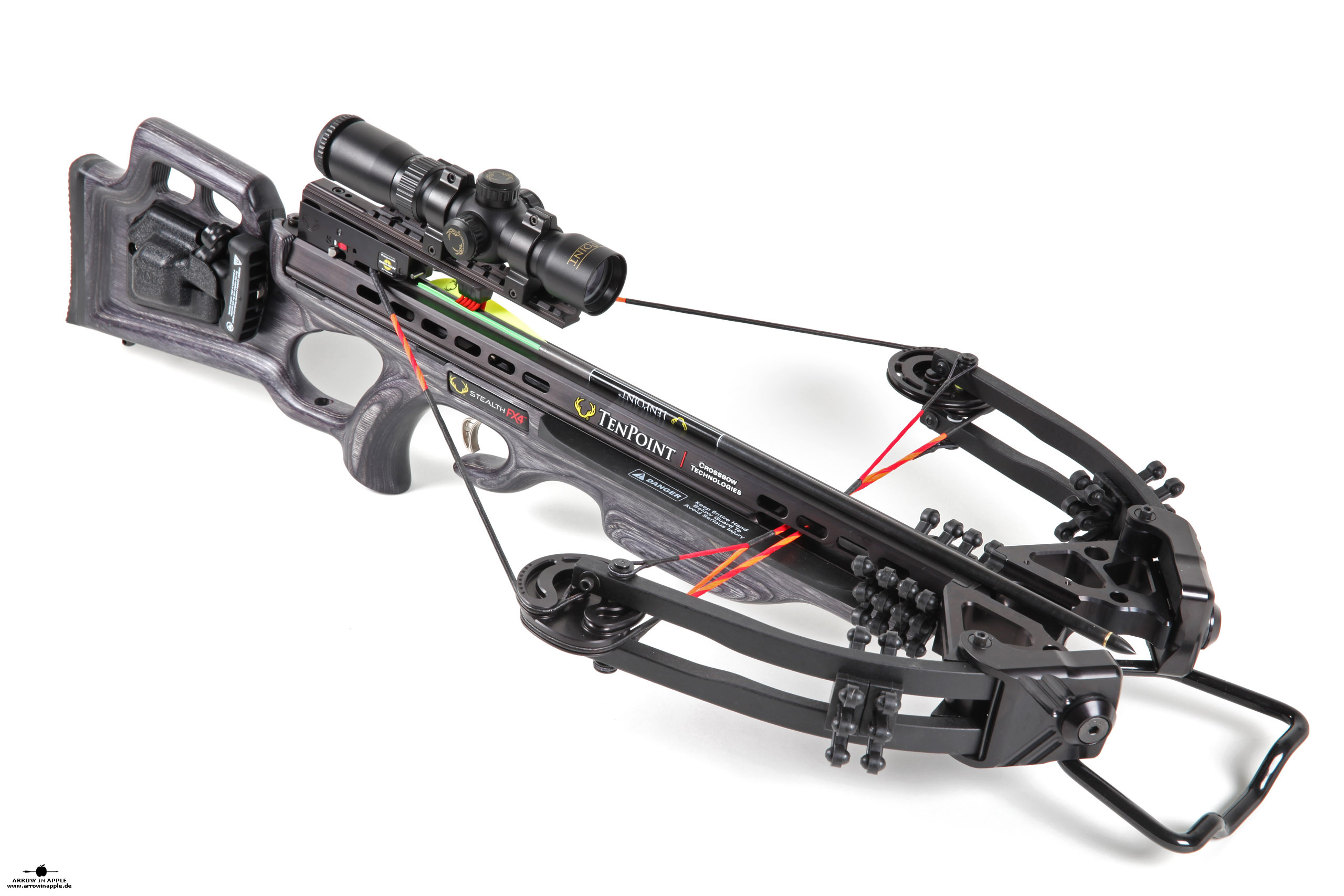 Stealth FX4 XTRA - immer noch die exklusive Top Armbrust der TenPoint Reihe. Die Stealth FX4 XTRA ist ein spezielles Sondermodell der TenPoint Linie und ist wie die Venom XTRA mit einem Schichtholzschaft bzw. zusätzlich mit allem wichtigen Zubehör als "Sorglospaket" versehen. Der technische Unterschied liegt nur in den Pfeilführungschienen. Die der FX4 ist ein gezogenes Profil aus Flugzeug Aluminium und die der Venom aus Carbon. Die technischen Daten sind der des Standartmodells und der der Venom gleich bzw. bestehen theoretisch unwesentliche Unterschiede. Der Holzschaft bringt nicht nur vom Feeling her Begeisterung, sondern auch das Erscheinungsbild ist ein ganz hochwertiges. Das ganze gepaart mit den FX4 Leistungsdaten, der Genauigkeit und der Verarbeitung dieser kompakten aber auch robusteren TenPoint ergibt eine perfekte Armbrust. |