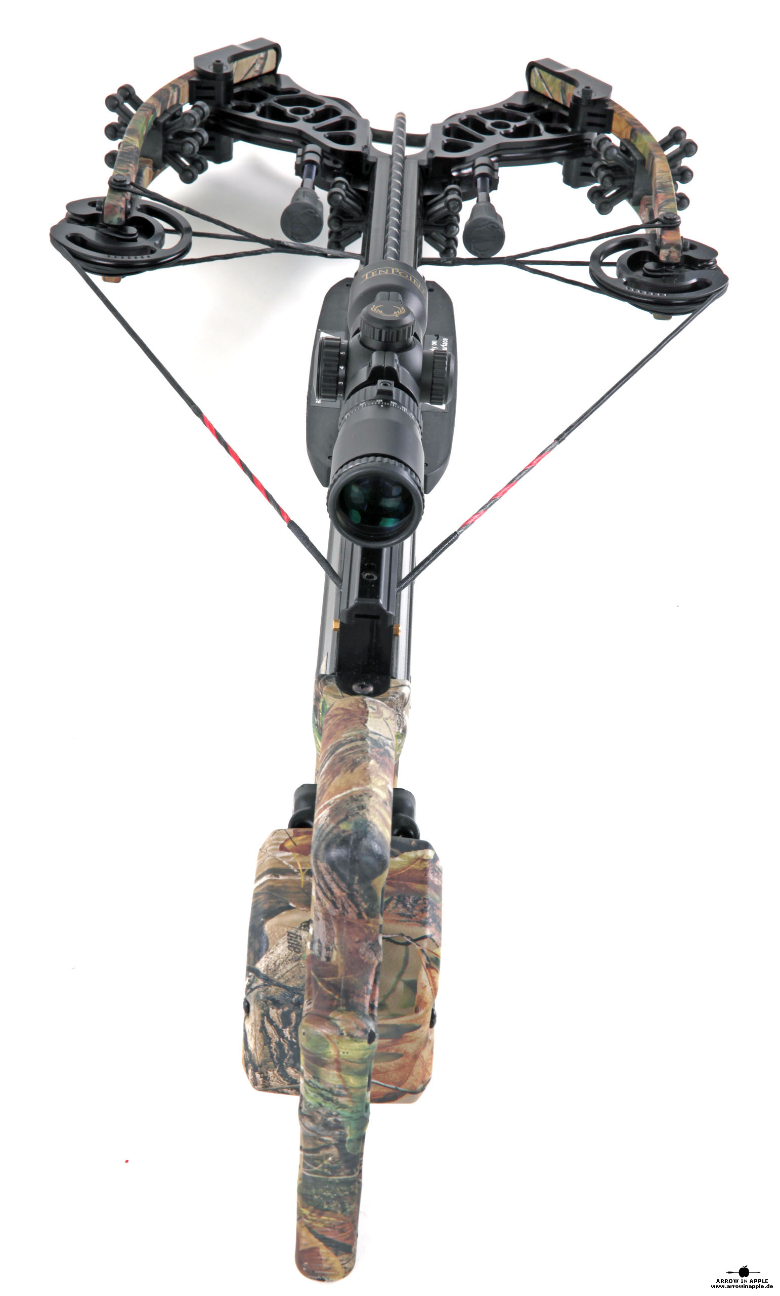 Sie befördert wegen des längeren Auszuges 22 Zoll Carbonpfeile V22 mit Omninocks oder besser die Black Eagle Executioner .001, 22 Zoll mit Omninocks. Das Sehnen und Kabelsystem ist vom Premiumhersteller Viper X.