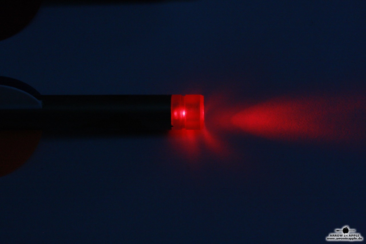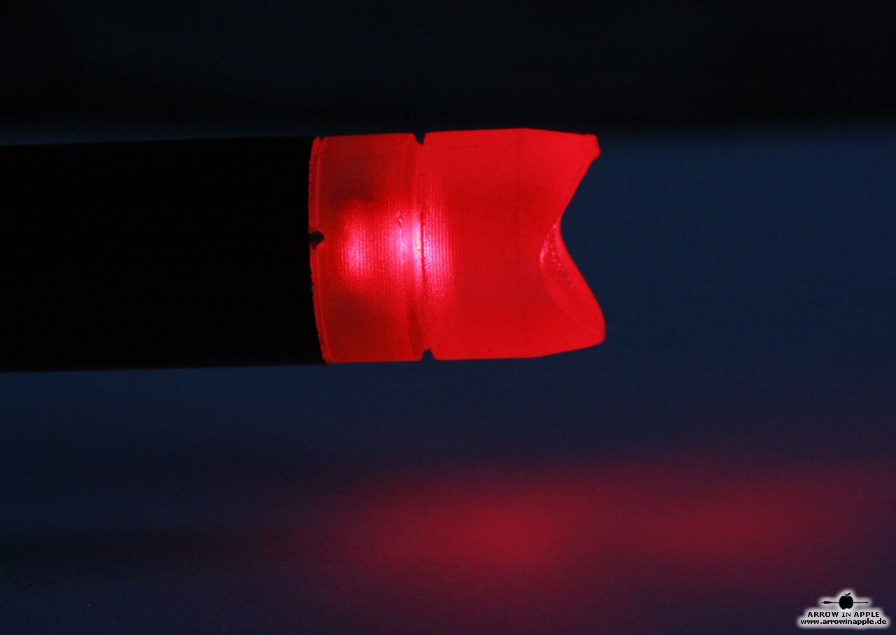 Die Installation ist sehr einfach. Der Nock wird einfach in das hintere Schaftende des Pfeiles gesteckt. Zwei Kontakte 180 Grad am äußeren Rand des Nocks voneinander entfernt berühren beim Abschuss das Schaftende des Aluminumpfeiles und lassen somit den Strom durch die Leuchtdiode fließen.