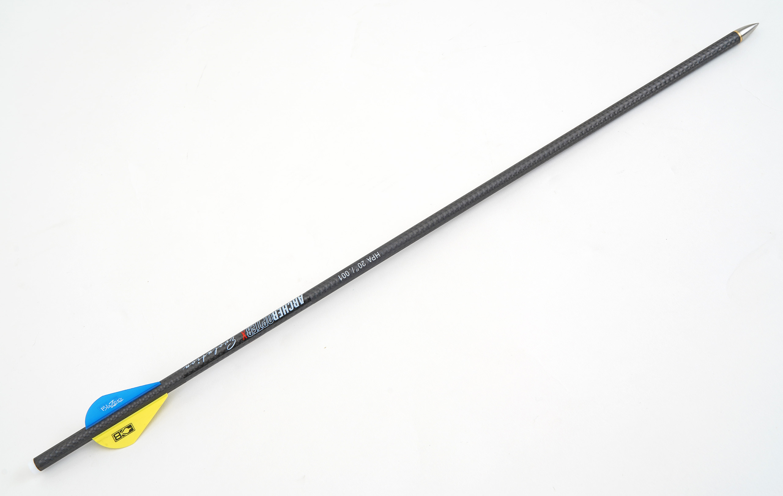 20 Zoll Carbonpfeil mit .001 straightness und mit 2 Zoll BlazerVanes ArcherOpterX ist eine neue Pfeilsorte, die extra auf moderne und leistungsfähige Armbrüste zugeschnitten, eingestellt oder getunt werden kann. Die Evolution Serie unterscheidet sich in folgenden Punkten zu herkömmlichen Carbonpfeilen: Zum einen ergibt sich ein leichteres Herausziehen aus der Zielscheibe, zum anderen wurde die Carbon-Struktur verändert. Im Falle der Zerstörung ist eine längliche Splitterbildung in Pinselform deutlich unwahrscheinlicher. Verglichen werden kann dies mit einer Autoscheibe, die anstelle in große und gefährliche in viele kleine und ungefährliche Stücke splittert. Bitte fügen Sie bei Bedarf Ihre passende TopHat-Spitze zum Warenkorb hinzu. Sollten Sie sich beim Pfeilgewicht unsicher sein, teilen Sie uns das einfach im Kommentarfeld mit. Der Flatnock ist ebenfalls enthalten. Eventuelle Leuchtmittel (sofern abgebildet) sind nicht inbegriffen, können bei uns allerdings separat erworben werden. Die Schaftstärke bzw. der Durchmesser erlaubt die Verwendung yon z.B. Endnocken der unterschiedlichsten Armbrüste. Die Geradheit (Straightness .001) von 1/1000 Zoll, die Verwendung von exakten Messinginserten und die Kombination mit der momentan besten Übungsspitze (TopHat), machen den Pfeil überragend.