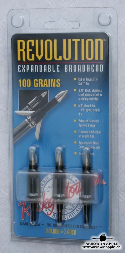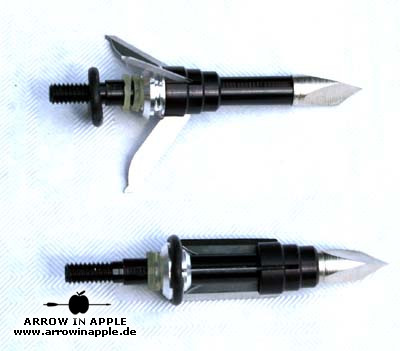 Mechanische Jagdspitze mit hervoragenden Pfeilflug, die 3 Klingen öffnen erst beim Einschlag. Gewicht 100 grain (ca. 6,48g)