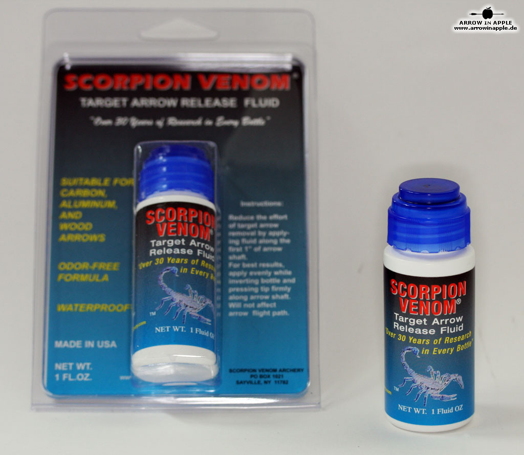Das Scorpion Venom Target Arrow Release Fluid ist bestens als Schmiermittel für Armbrust - Mittelwicklung und Armbrust - Schiene geeignet, das hat die eigene Erfahrung und die vieler anderer Schützen gezeigt. Normalerweise ist es als Streichmittel gegen das "Festbrennen" der Pfeile in Zielscheiben gedacht. Es reicht, wenn nur wenig auf der Pfeilschiene der Armbrust aufgetragen und mit einem Lappen gleichmäßig verteilt wird, ebenso auf der Mittelwicklung der Armbrustsehne. Die Lebensdauer der Mittelwicklung wird erheblich verlängert. Inhalt: 1 oz = 28,349g