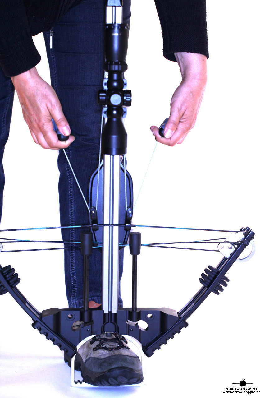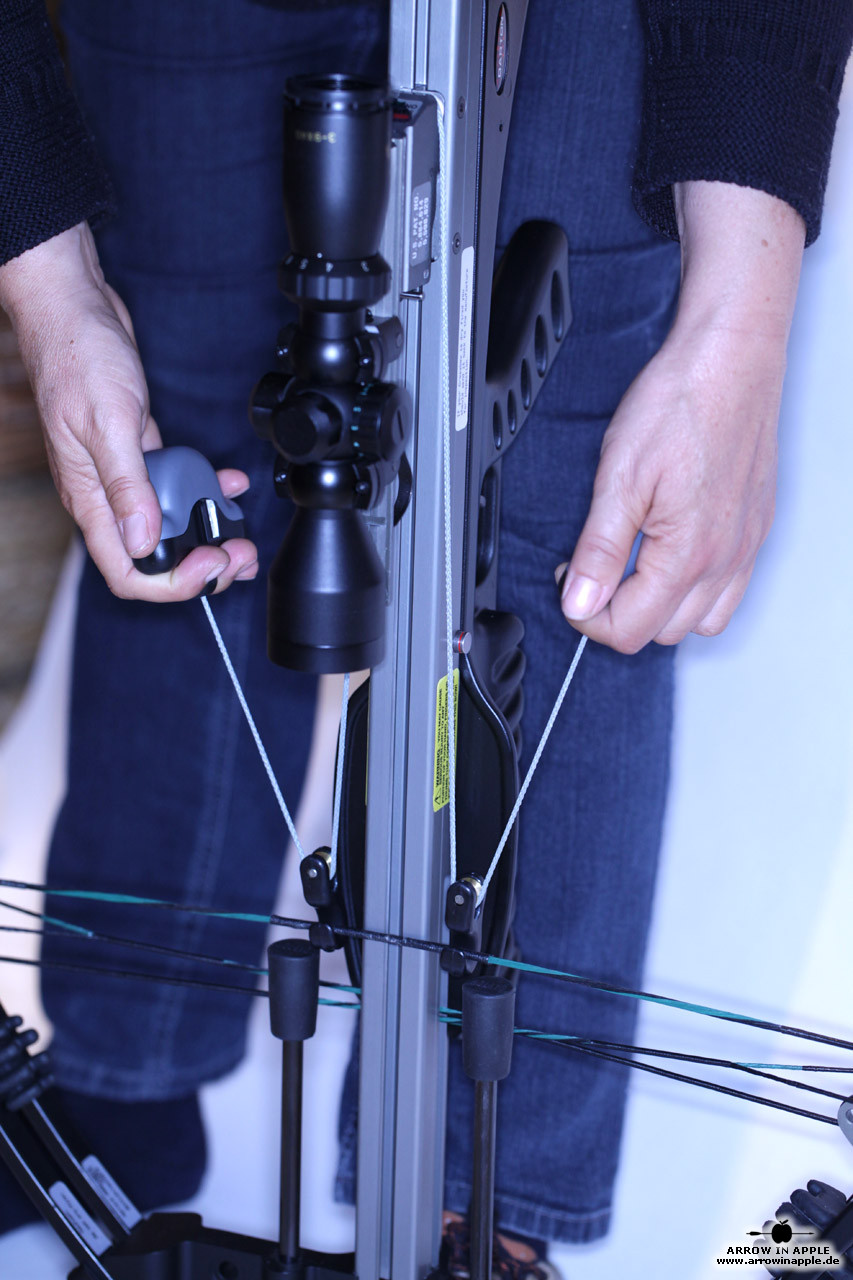 Universelle Seilspannhilfe für unterschiedliche Armbrustmarken. Das Spannseil wird nach dem Aufziehen der Armbrust automatisch von einer Feder im Griff der Spannhilfe zurückgezogen und kann daher kompakt und schnell verstaut werden. Tasche für den Transport am Gürtel oder in Kombination mit einen ebenfalls inklusiven Karabinerhaken sind dabei.