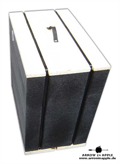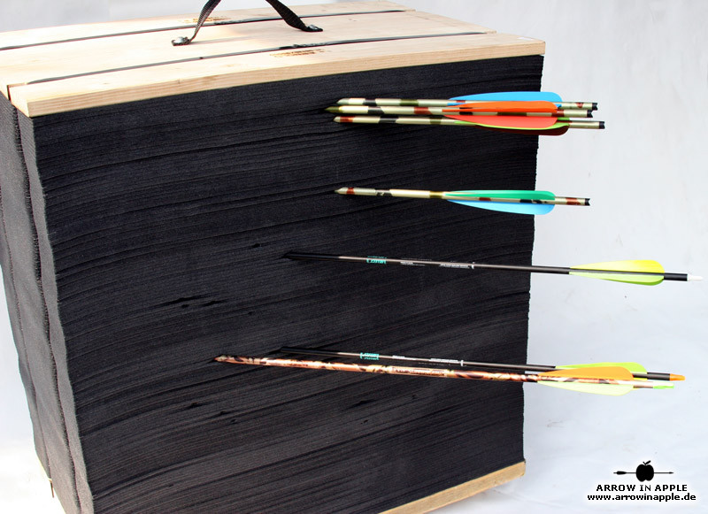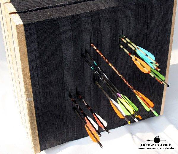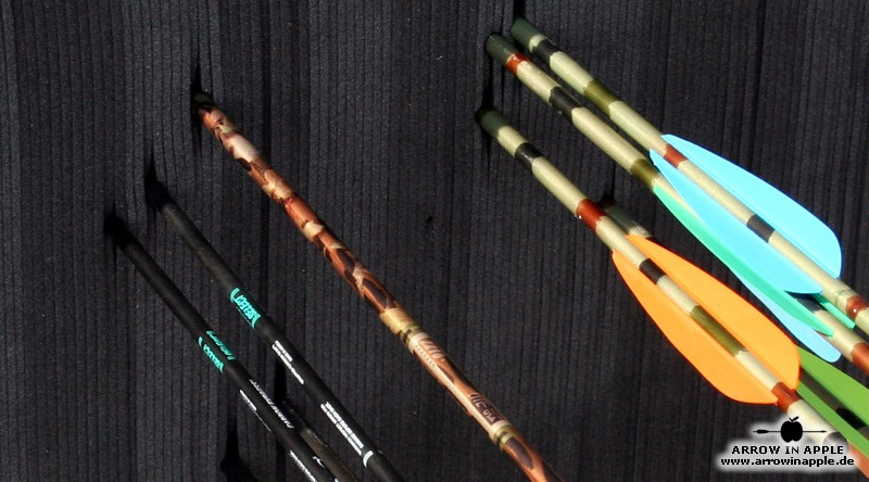 Die Lebensdauer der Scheibe wird noch einmal verlängert bzw. die Pfeile lassen sich noch leichter ziehen, wenn man ein paar kleine Tipps beachtet: 1. Beim Schießen frontal auf die Scheibe, stellt man diese mit den Lamellen senkrecht auf. 2. Beim Schießen aus seitlicher Richtung auf die Scheibe, stellt man diese mit den Lamellen waagerecht auf. DATEN