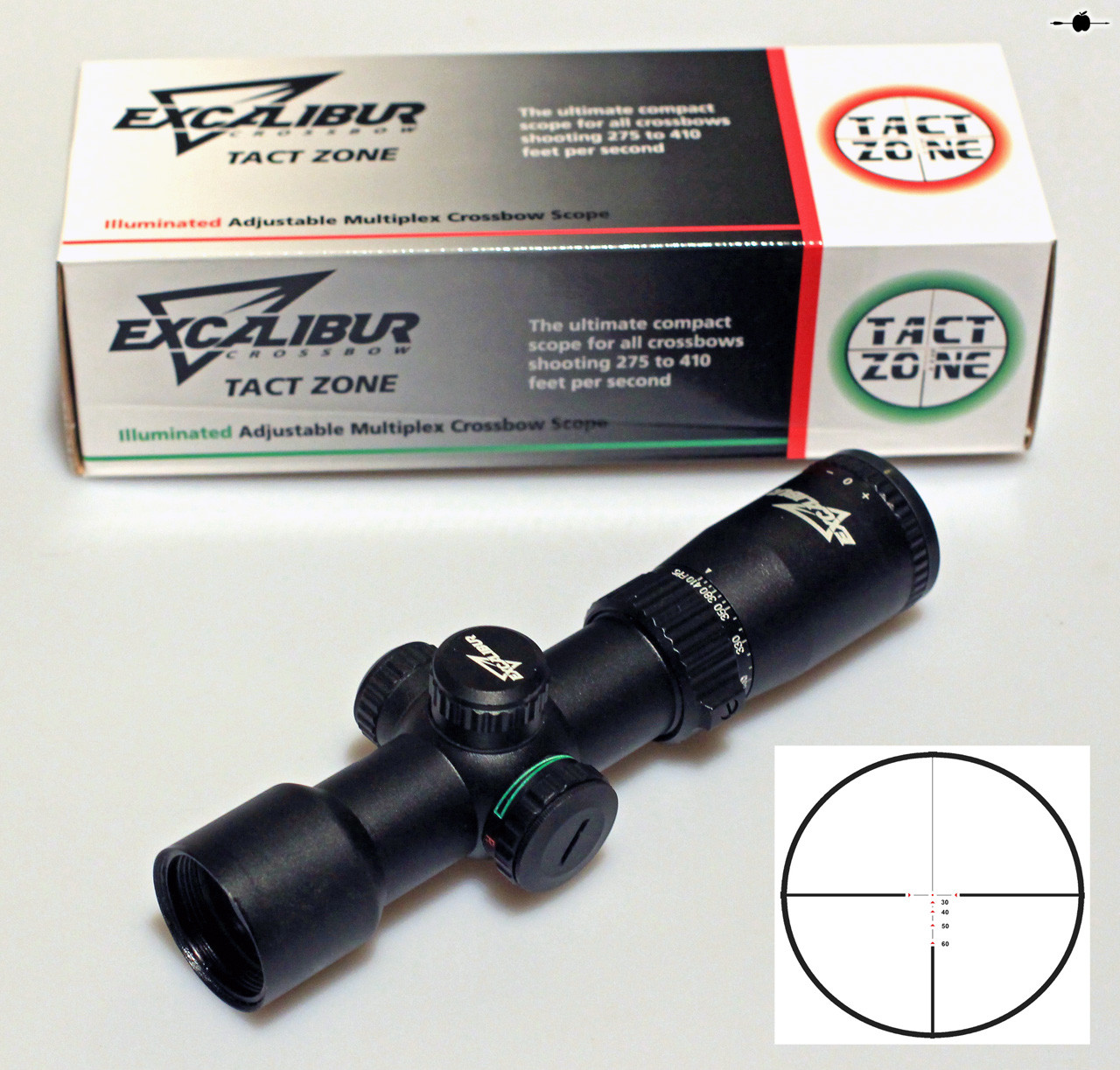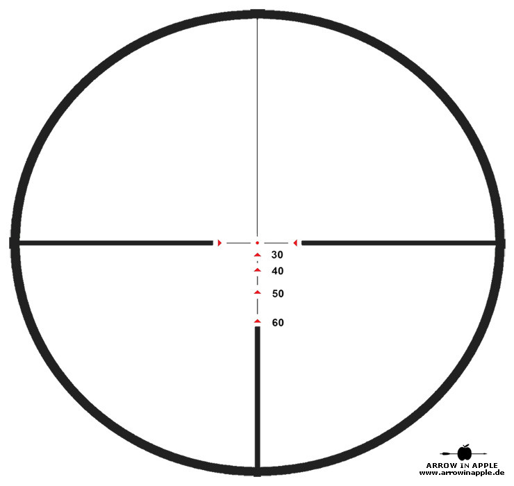 2-6 x 32, 30mm Tubus, rot / grün stufenlos beleuchtbar, Einstellbare Pfeilgeschwindigkeiten am ZF. Absehen bis ca. 70m. Inkl. 30mm ZF Ringe