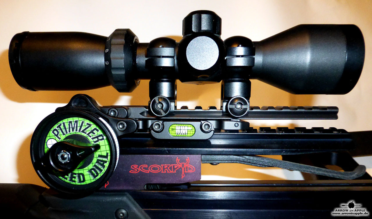 Eine 2019 verbesserte Höhenverstellung für Armbrust - Zielfernrohr Weaverschienen bieten wir hier von der Firma HHA Sports an. Diese verstellbare Weaverschiene ist stufenlos und schnell am seitlichen Stellrad einstell- und fixierbar und ist in Kombination mit speziellen Zielfernrohren für Entfernungen bis 180m (200yards) verwendbar Alternativen sind jetzt erstmal auch die neuen FlexRange Zielfernrohre AIA FRS 100 und AIA FRS 101 Das System ermöglicht bei Zielfernrohren mit nur einer Fadenreuzmarkierung Entfernungen bis 100 yards (ca.92m), das heißt in Kombination mit unserem leichten und kurzen AIA 4x32 sind Weiten bis 180m realistisch. Leichte und kurze Zielfernrohre sind auch genau die, welche für den Aufsatz empfohlen werden. In der Lieferung enthalten sind eine Vielzahl von Aufklebstreifen (für das Einstellrad) mit Entfernungseinteilungen, passend für die unterschiedlichsten Armbrusttypen und Pfeilgeschwindigkeiten u.a. Darton, TenPoint, Scorpyd, Excalibur und Parker.